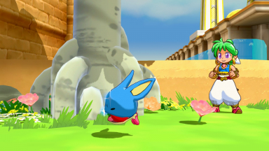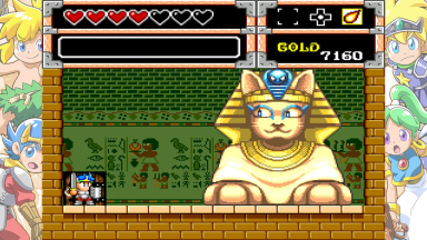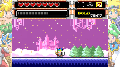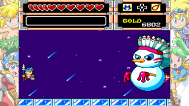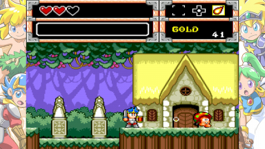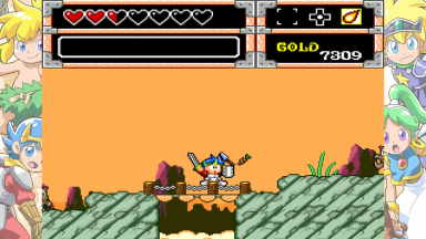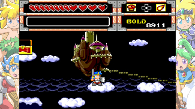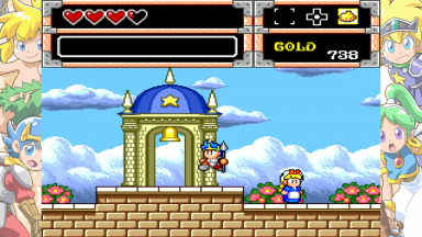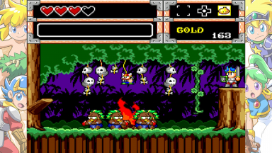 Screenshots from the Monster World games. These are from various games in the "Wonder Boy" series (or others, like Dynastic Hero). The screenshots contain the games "Wonder Boy in Monster World" and "Asha in Monster World", Monster World 3 and 4.